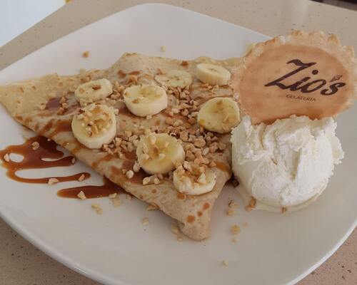 | Reeses | Freshly made crepe served with a layer of Nutella and sliced banana, drizzled with chocolate sauce and chopped nuts. Served with whipped cream or a scoop of vanilla ice cream | £6.95 |