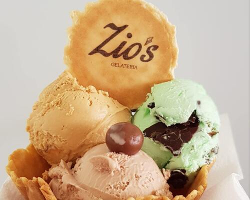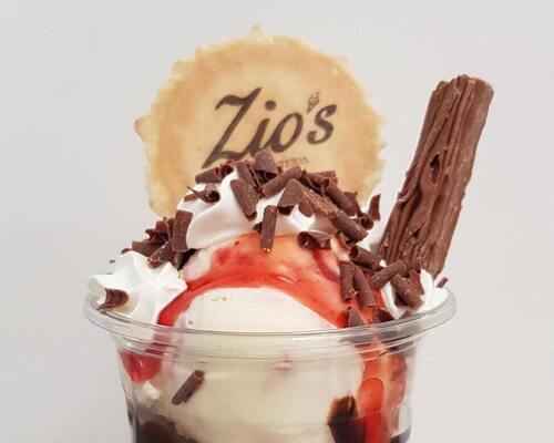 | Zio’s caramel combo | Salted caramel ice cream, accompanied by a scoop biscoff and a scoop of vanilla ice cream topped with caramel sauce, whipped cream, fudge pieces and a wafer. | £7.50 |